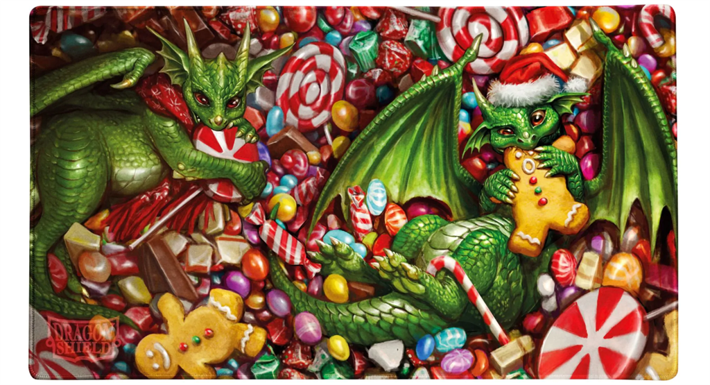 Embrace the season's cheer with the silky smooth playmat featuring the 2024 Dragon Shield Christmas dragons.