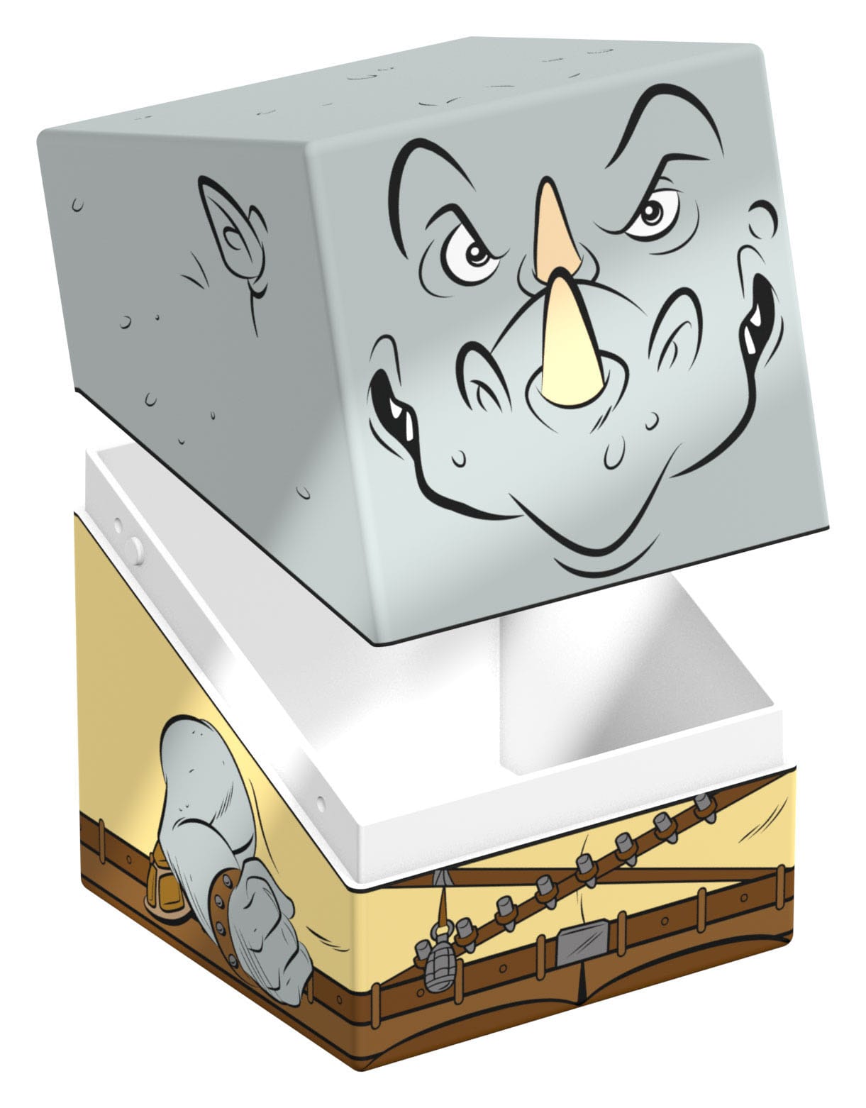 Collectible box for storing TCG decks, tabletop gaming accessories, and/or collectibles. The Rocksteady Squaroe from the Teenage Mutant Ninja Turtles™ edition holds up to 100 cards in double protective sleeves if used as a deck box. Squaroes are made from 78% renewable recources and fit perfectly into the separately available Collectors Case.